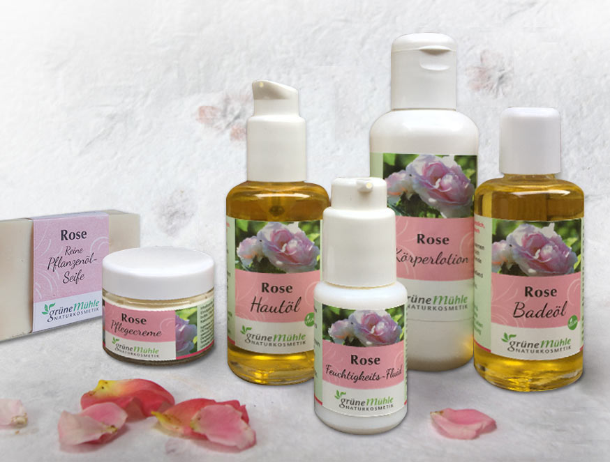Unsere Rose-Kosmetik berührt die Haut auf eine zarte Weise.